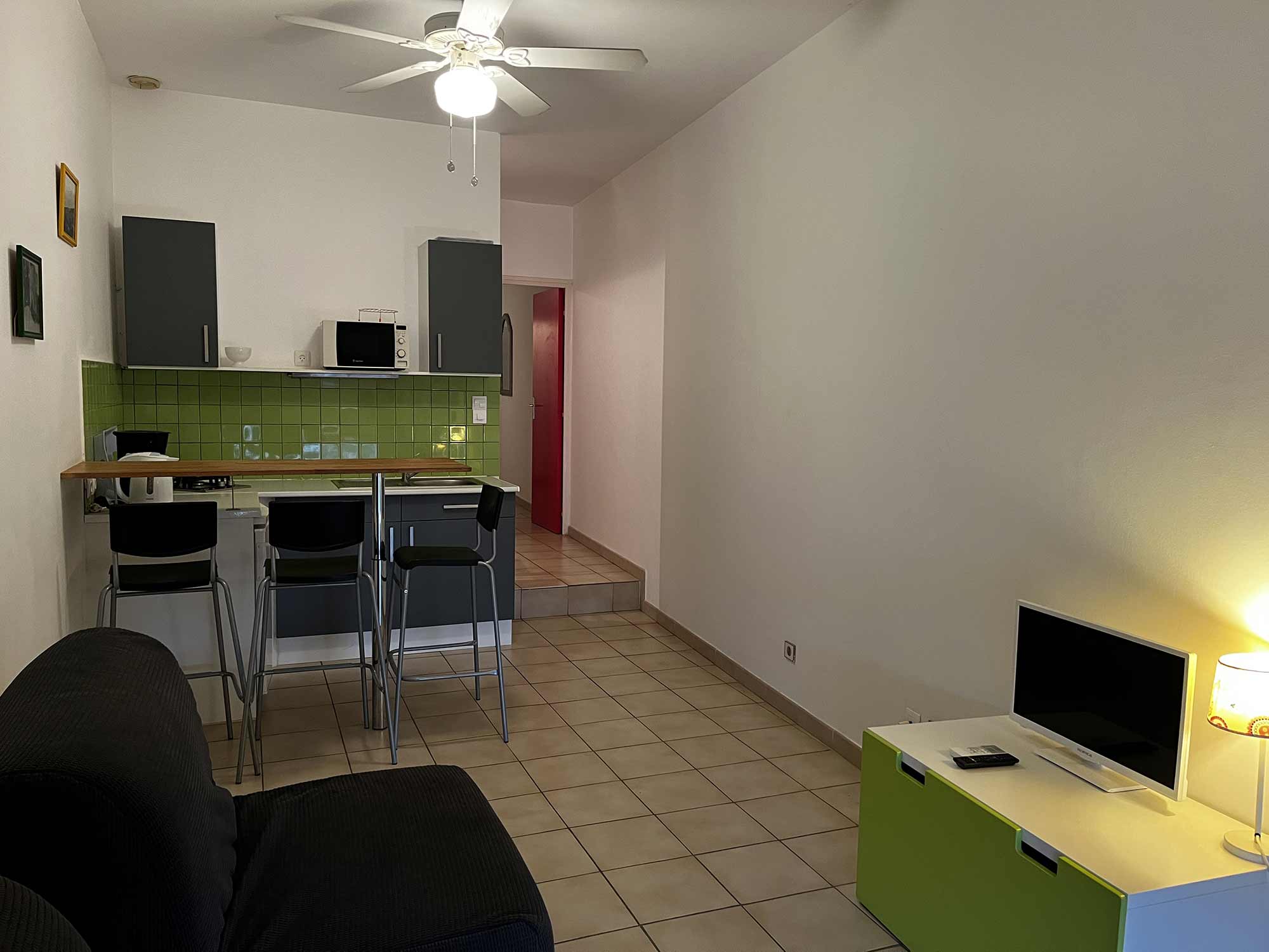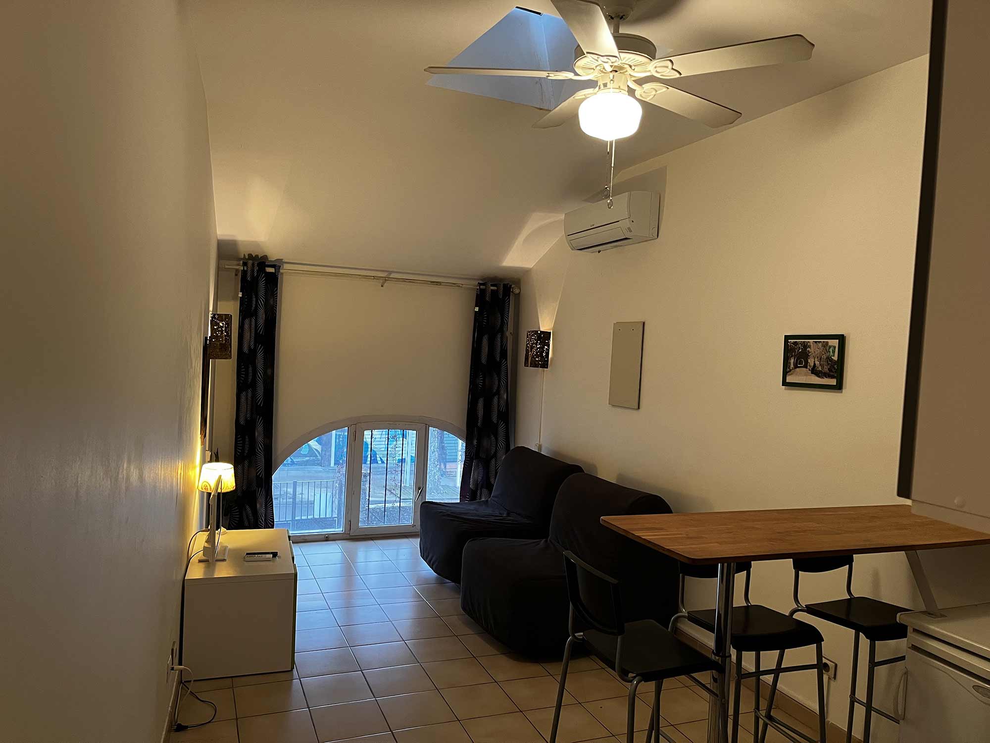 Le gîte n°7 offre une pièce de vie lumineuse avec coin cuisine tout équipé et une chambre agréable donnant sur le parc. Une terrasse en rez-de-chaussée est également mise à disposition pour profiter pleinement des extérieurs, idéal ” petit budget”.